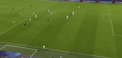 萨卡亲自操刀,皮球钻入死角,这是萨卡连续4个欧冠客场破门,创造枪手纪录。