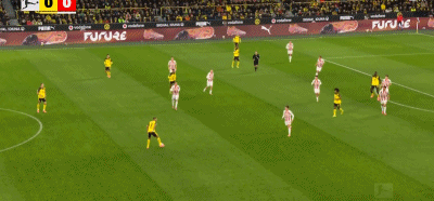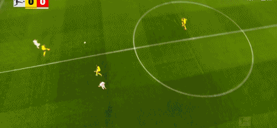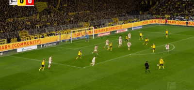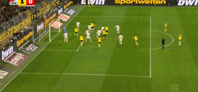 第90+7分钟,补时绝杀,拜尔后点低射破门,多特1-0